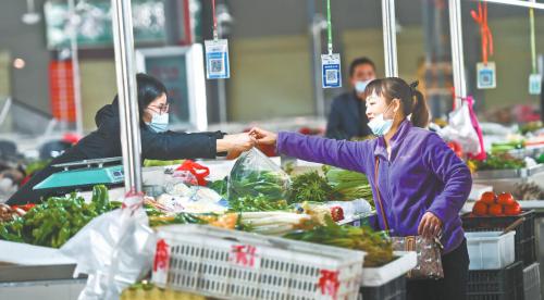 市民在問津菜場菜攤買菜。 長江日報記者 許魏巍 攝